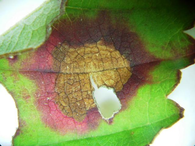 褐斑病 葉表病斑 穴が空きやすい