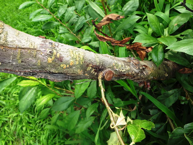 胴枯病 幹に裂け目を生じ、枝が枯れる(6月下旬)
