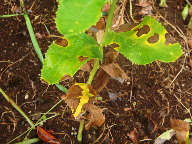 葉枯病 病斑が拡大すると葉全体が褐変く