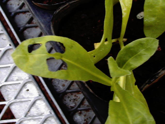 ヨトウムシ中齢幼虫の被害葉