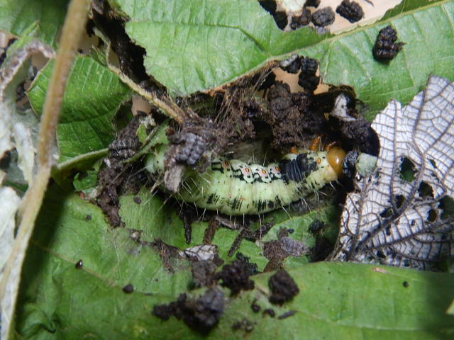 フクラスズメ脱皮直前幼虫 葉や糞で巣をつくる