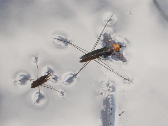 オオアメンボ雌成虫(体長23mm)及び雄成虫(体長18mm)