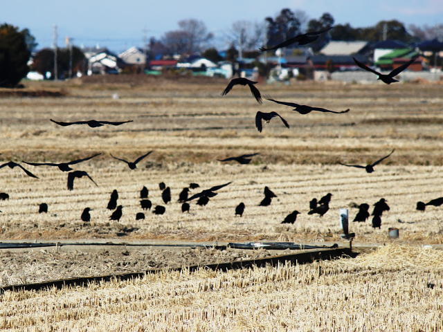 ハシブトガラス成鳥 群れを作って活動