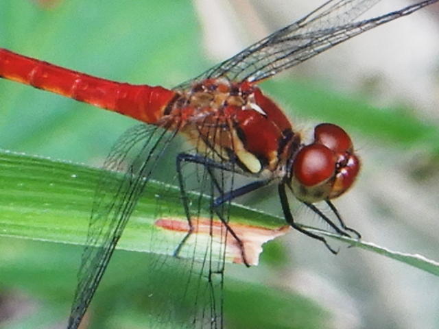 ナツアカネ成虫 胸の真ん中の黒い線が途中で平らに切れている