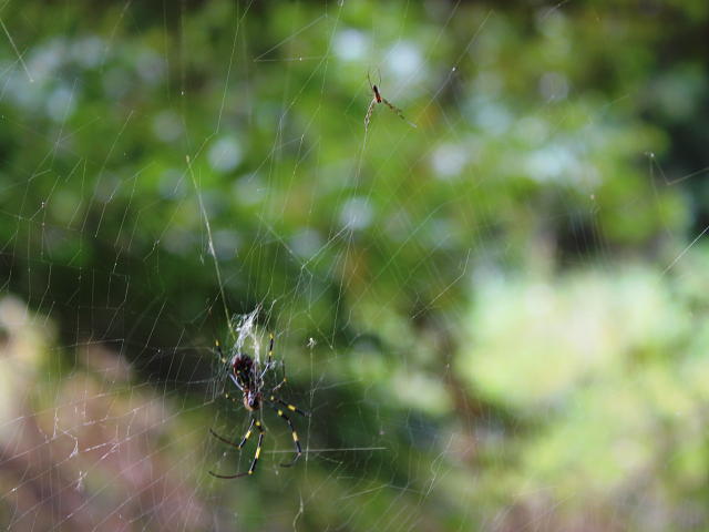 ジョロウグモ雌成体(大きい)と雄成体 腹面