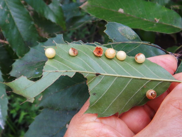 クヌギハマルタマバチによる虫こぶ 葉裏に多数できた