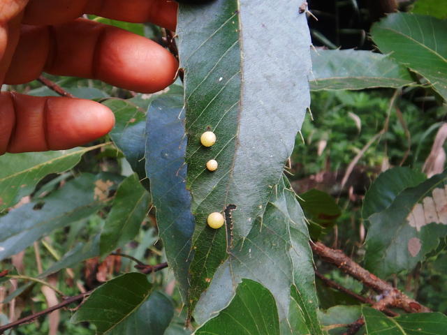 クヌギハマルタマバチによる虫こぶ 葉脈に沿って形成