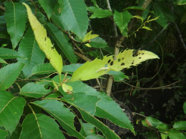シャクガ類中齢幼虫によるクヌギ新葉の食害