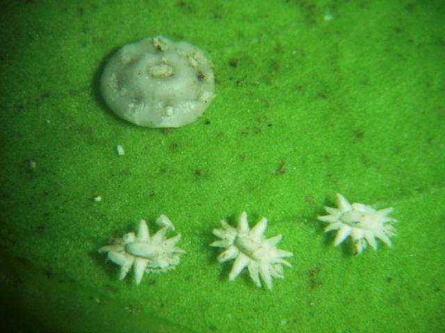 カメノコロウムシ幼虫(体長2mm)及び成虫(体長3mm)
