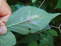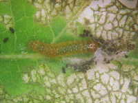幼虫は葉裏の表皮を食べて