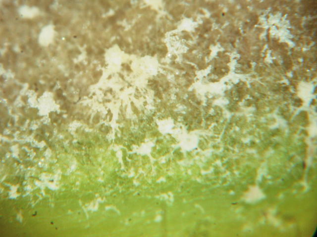 裏うどんこ病 葉裏病斑内の白カビ