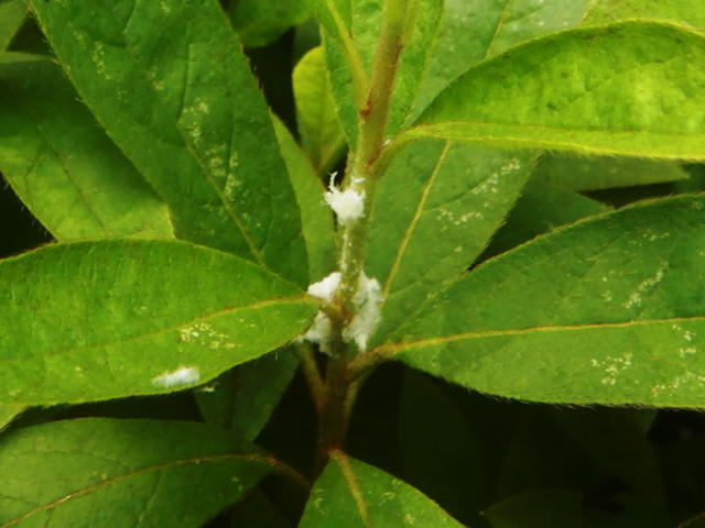 チュウゴクアミガサハゴロモ若齢幼虫が寄生したツツジ
