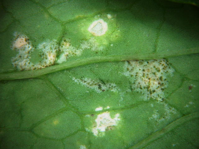 ネギアザミウマによる葉裏の食害痕