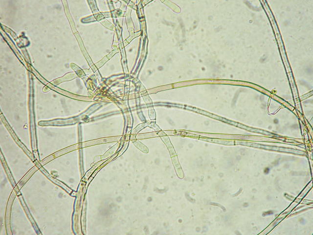 リゾクトニア属菌による果実腐敗 隔壁のある菌糸