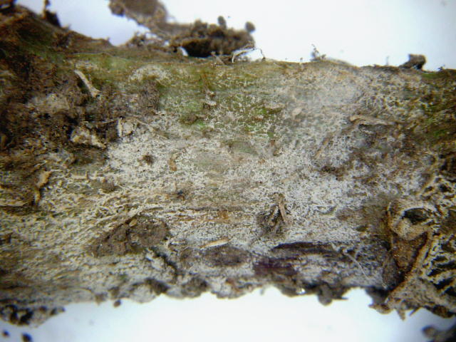 リゾクトニア属菌による地際部の白カビ 菌糸は深く侵入