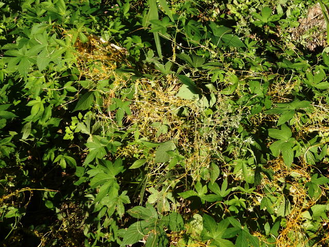 アメリカネナシカズラ ヤブガラシに広範囲に寄生