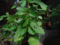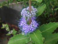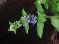 特徴:紫色の小さい花が集まった花序が、葉のつけ根に段々につく。