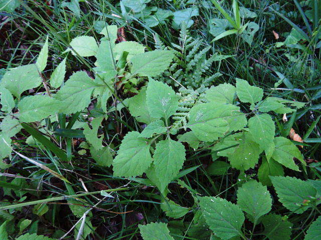 ハエドクソウ 葉は先の尖った楕円形で粗い鋸歯がある