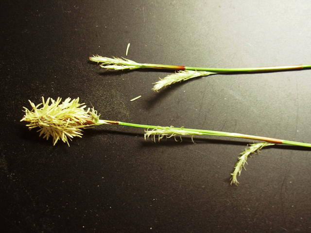 ヒメカンスゲ 先端に雄小穂、その下に雌小穂がつく