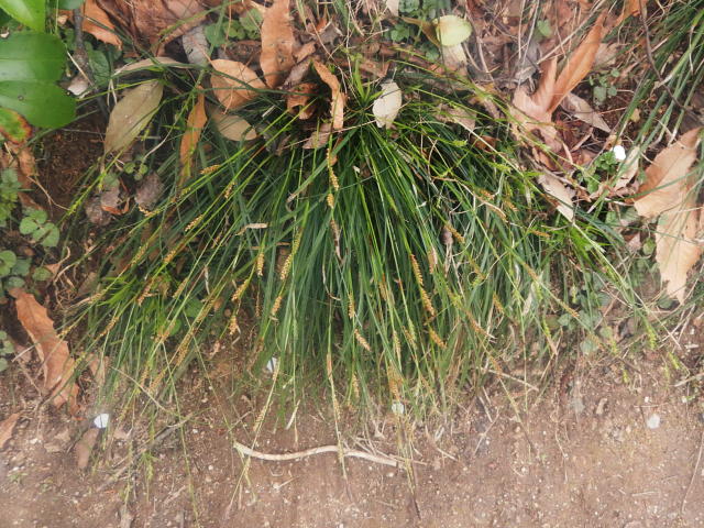 ヒメカンスゲ 雌小穂は次第に褐色を帯びる