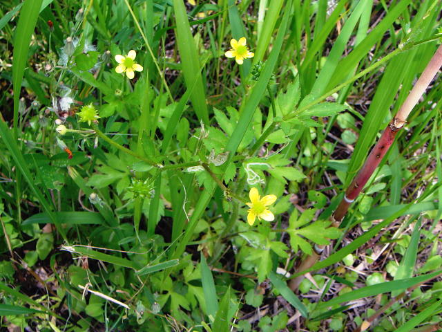 ケキツネノボタン 小株の花と果実