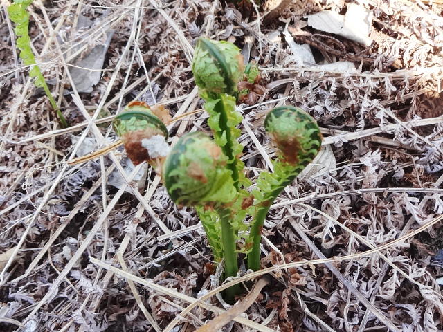 クサソテツ 新芽のコゴミ収穫期(4月上旬)