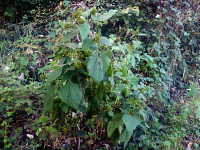 特徴:葉は卵形から卵状三角形。花は円錐花序で多数の小さい黄色い花をつける。