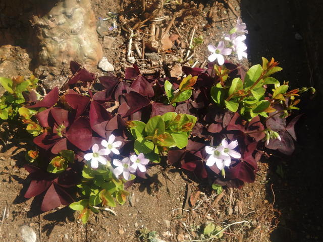 オキザリス紫の舞 樹木脇の株の開花(4月下旬)