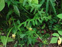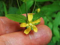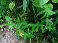 | 多年草 茎の長さ:30〜50cm 花期:6月〜8月 生育場所:道ばたなど 特徴:長楕円形の葉と黄色い花。黒点が蕾や萼に多く、葉にも散在。 名前の由来: 鷹の傷を直す秘草を、鷹匠の兄弟の弟が他人に口外したために、 兄が怒りその弟を切り殺した。その血しぶきが花や葉に黒い点々となって残ったという伝説により「弟切草」。 |