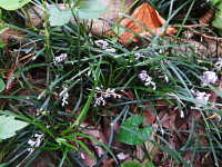 | 多年草 草丈:20cm(小型のタマリュウは10cm) 花期:7月〜8月 生育場所:道端、山野の樹木下、野原など 特徴:幅2〜3mmの細い葉が多数伸びる。古くからグランドカバーに使われている。 名前の由来:細く伸びた葉が竜の口髭を連想させるため。 |