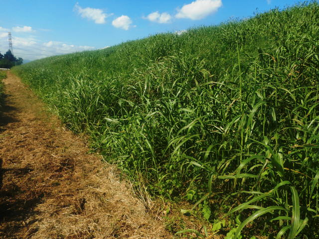 セイバンモロコシ 土手の群落(10月中旬) ※夏期の刈り払い後に再生