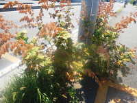 歩道のツツジの植栽に侵入