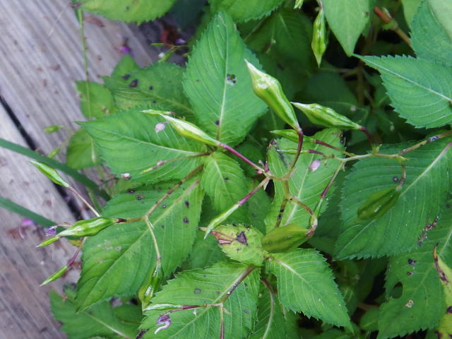 ワタラセツリフネソウ 細長い果実(10月中旬)