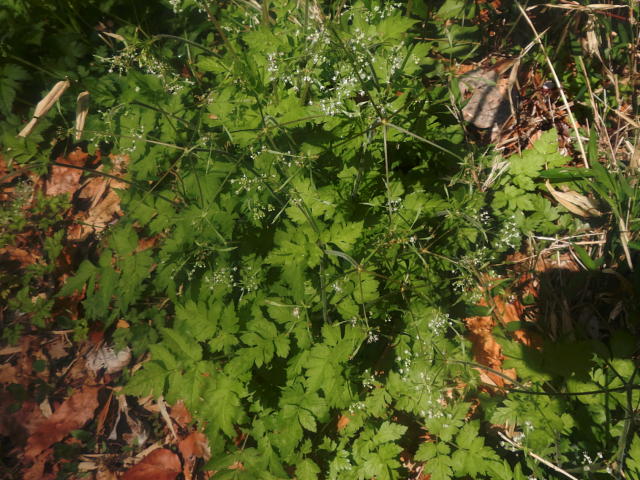 ヤブニンジン 開花中の大株(4月中旬)
