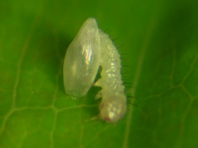 卵からキチョウ幼虫が出てくる