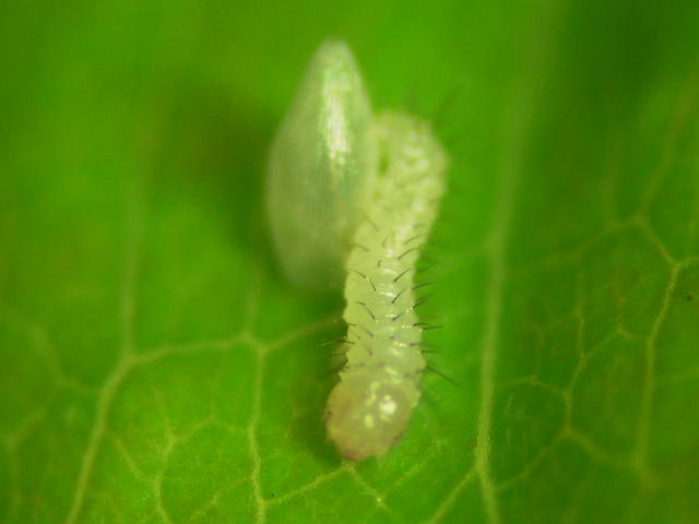 卵からキチョウ幼虫(体長2mm)が出た