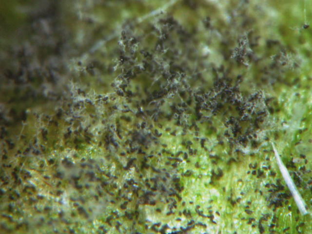 べと病 黒い分生子と白い分生子柄