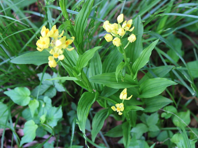 キンラン 葉は狭楕円形で縦に濃緑色の線が走る