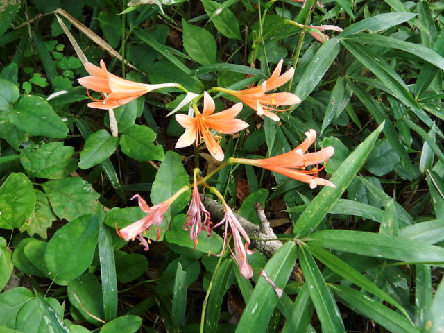 キツネノカミソリ 橙色の花(直径40mm、長さ60mm)