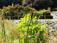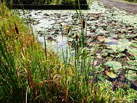 | 多年草 草丈:1m〜1.5m 花期:7月〜8月 生育場所:池や沼、水路、休耕田など 特徴:円柱形の濃茶色の雌花穂は、ガマより小さく、下部に向かってやや細くなる。花期はガマやヒメガマより約1ヶ月遅い。 名前の由来:ガマより全体的に小型で、草丈は低く、花穂は細く短いため。 |