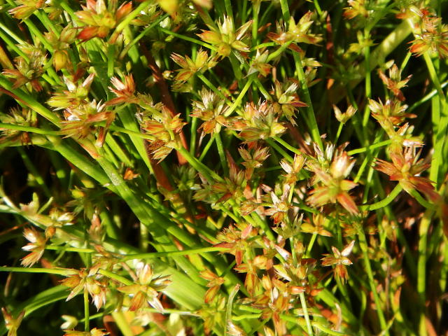 コウガイゼキショウ 赤味を帯びた緑色の頭花