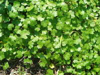| 多年草 草丈:5cm〜10cm 花期:6月〜7月 生育場所:やや湿った野原、田のあぜ、道ばたなど 特徴:円形で大きく5裂した葉 名前の由来:チドメグサは葉を傷口につけると血が止まると言われており、その仲間の中で野原に多いため「ノチドメ」。 |
