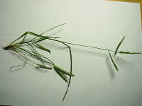 特徴:茎は扁平で踏みつけに強い。メヒシバに似るが、花穂の幅が広い。