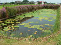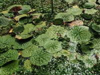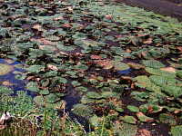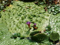 | 1年草 浮葉植物 花期:7月〜9月 生育場所:やや富栄養化した湖沼、ため池、河川など 特徴:最大で150cmに達する円形の葉で、表面に著しいシワがある。葉を突き抜けて紫色の花が咲く。 名前の由来:葉や茎に鬼のようなトゲがあるハスという意味。 |