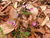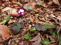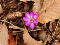 | 多年草 草丈:10cm〜15cm 花期:3月〜4月 生育場所:落葉広葉樹の下など 特徴:花は桃色、紫色、薄桃色、白色など変化に富む。葉は3浅裂の三角形の特異的な形。 名前の由来:葉が三角形であるため「ミスミソウ」。別種のミスミソウより花や葉が大きいため「オオ」。 |