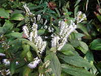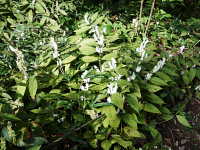 | 多年草 草丈:40cm〜70cm 花期:8月〜10月 生育場所:山野など 特徴:花柄のある白い花が房状に並ぶ。葉は長楕円形で細かい鋸歯があり対生する。 名前の由来:冬になると枯れた茎に「 |