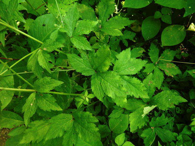 ウマノミツバ 葉は3全裂し、粗い鋸歯がある