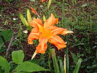 生育場所:野原、道ばた、土手など 特徴:橙色のユリに似た八重の花。