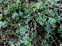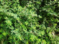 特徴:葉は楕円形の3小葉で、葉腋に小さい赤紫色の花がつく。