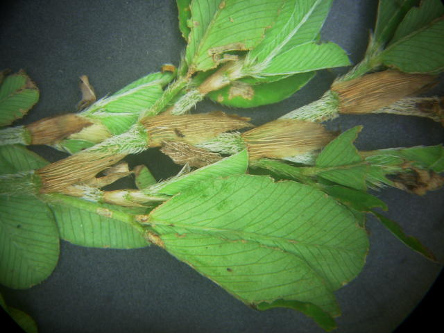 ヤハズソウ 葉柄基部に茶褐色の托葉がある